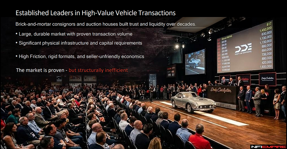 ✔ Positioned in a massive, fragmented market: $100B+ Classic/specialty automotive market.
